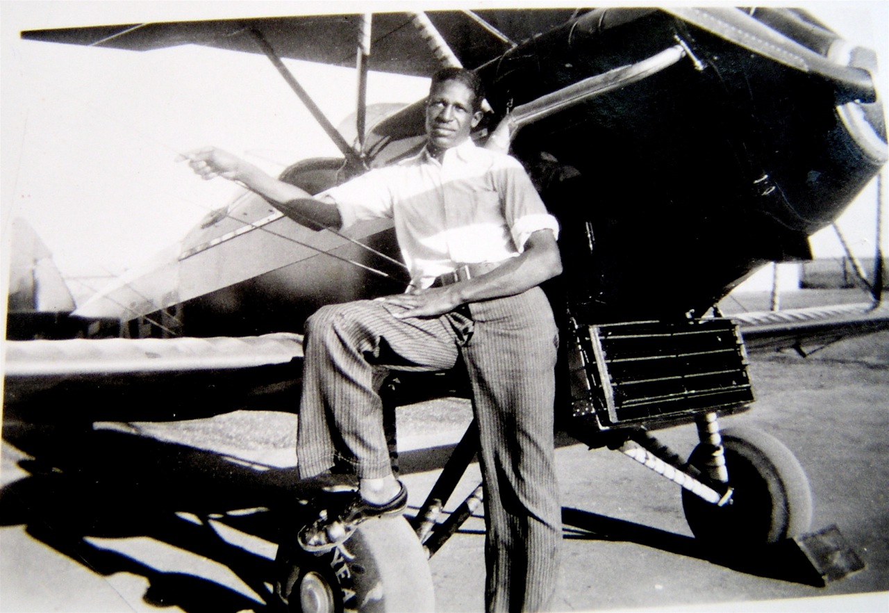 Frank Mann with biplane at Waco, Texas. From Wikipedia.