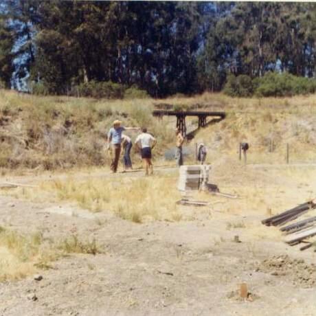 Golden Gate Live Steamers, Tilden Park. Blair Phillips directing the early layout of track panels. Photo by John Haines. From http://web.archive.org/web/20040718194532/http://www.ggls.org/pictures/EarlyDays/Tilden01.html