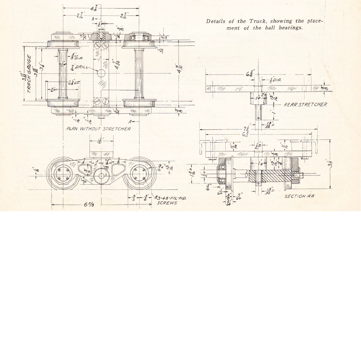 George Taylor's 3-1/2 inch gauge flat-car. From The Model Craftsman, November 1945.