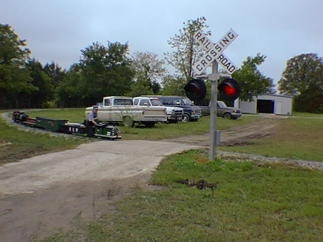 Gerry Stuteville crossing the grade protected by a signal he repaired at the Able Springs & North Texas Railroad.