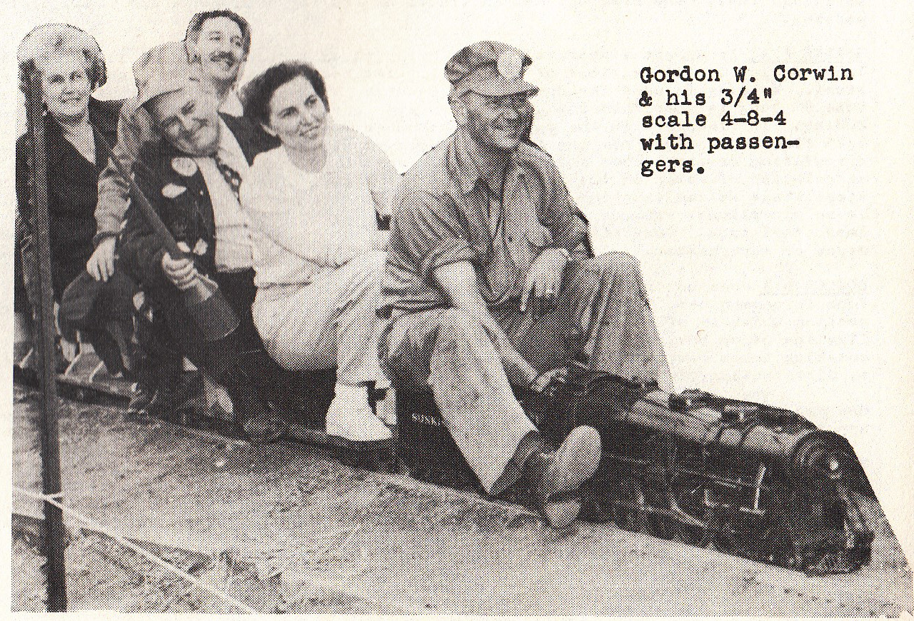 current | 20:01, 7 May 2017 | ![]() | 1,280 × 870 (628 KB) | Dnevil (talk | contribs) | Gordon W. Corwin and his 3/4 inch scale 4-8-4 with passengers. From 1962 Little Engines catalog. |