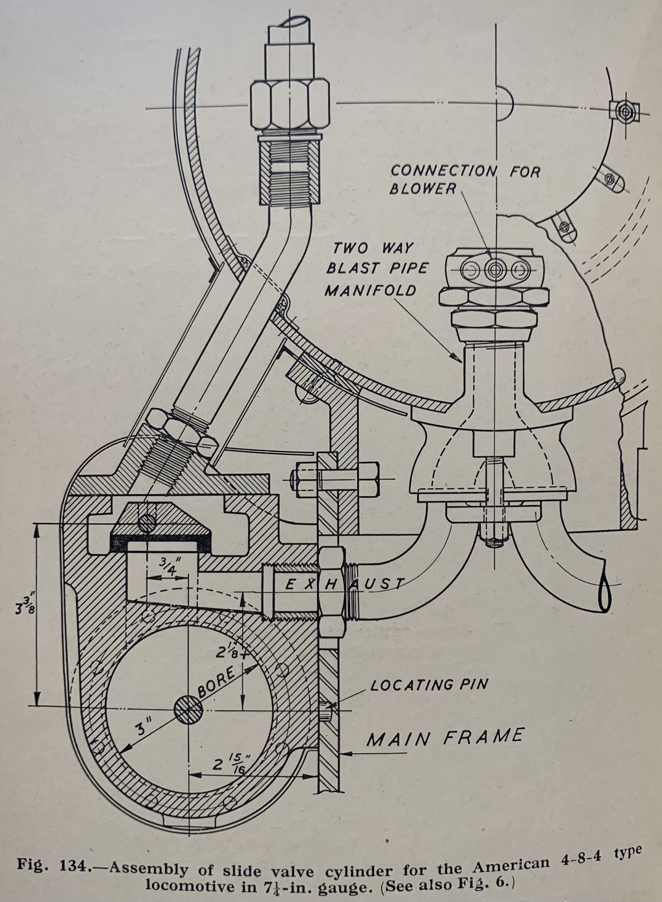 Assembly of slide valve cylinder for Greenly's American 4-6-4/4-8-4 locomotive in 1.5 inch scale. From "Model Steam Locomotives" by Henry Greenly, Oct 1962 edition. From "Model Steam Locomotives" by Henry Greenly, Oct 1962 edition.
