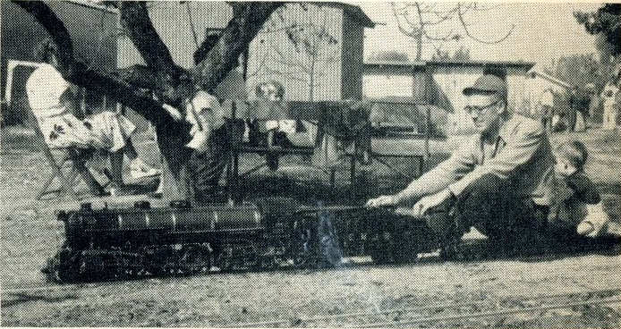 Harry Dixon runs John Matthews engine "Charlotte" at SCLS. From "The Miniature Locomotive" magazine, Jan-Feb 1953.