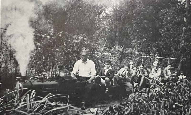 Horace P Shaw, engineer, on the Whysall Light Railway. From Modeltec May 1984. Photo by Mrs. H.R. Shaw