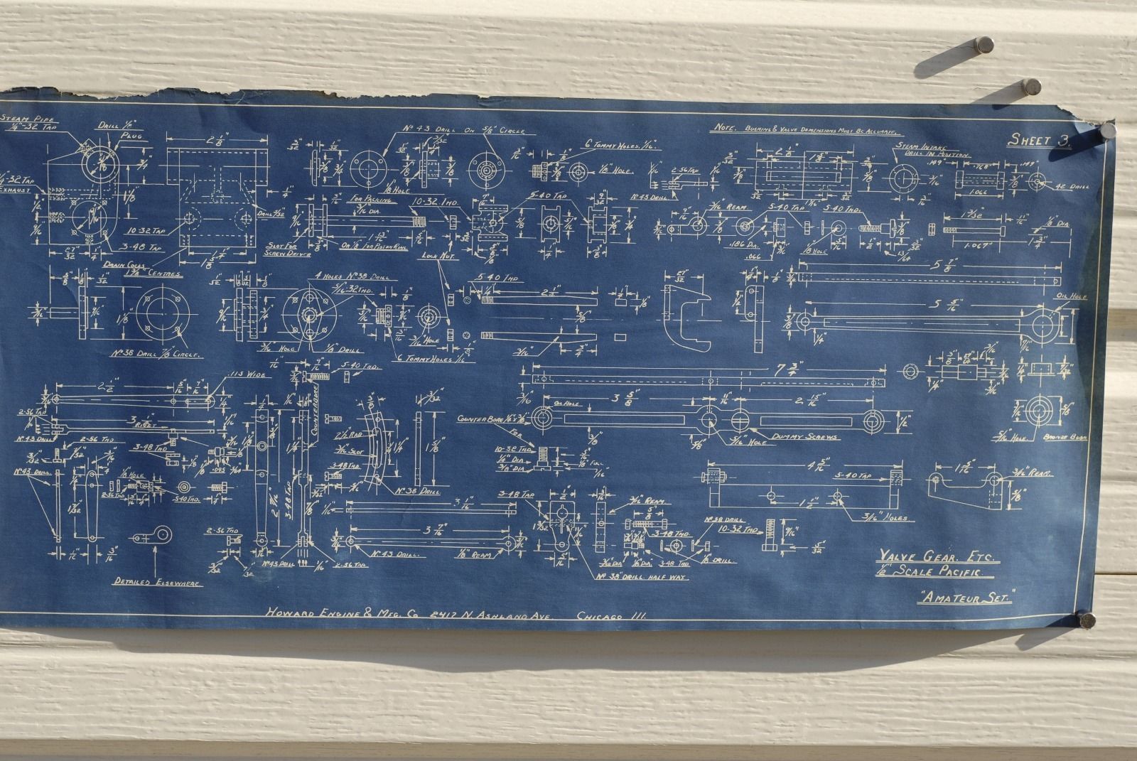 1/2 inch scale drawing of a 4-6-2 Pacific by Howard Engine & Manufacturing Company.