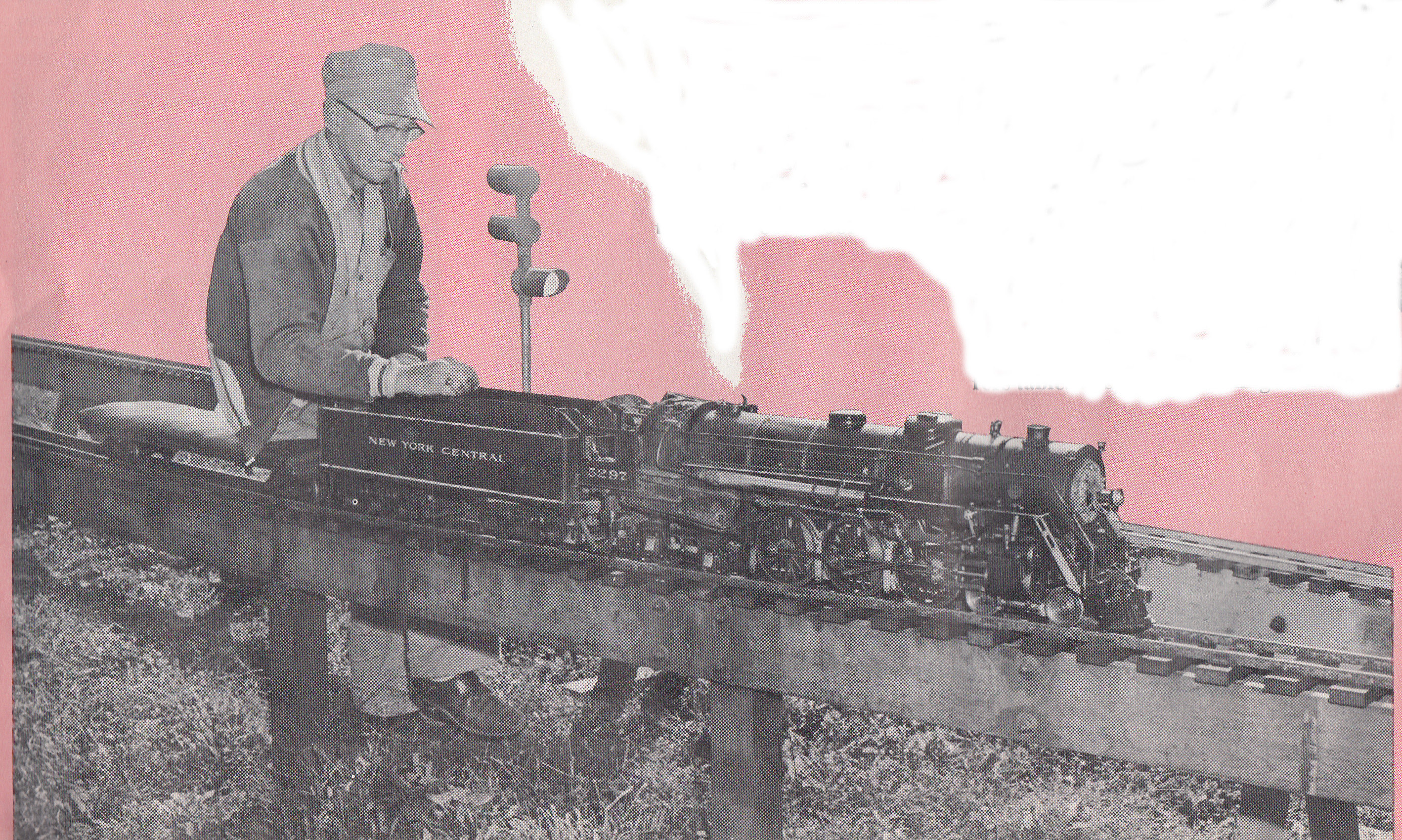 With a roaring fire and a full head of steam, No. 5297 is ready to take engineer-building Alva B. Trook for a spin around the 1200-foot Trook Line. From "Magic Circle". Photo by Don Beeson.