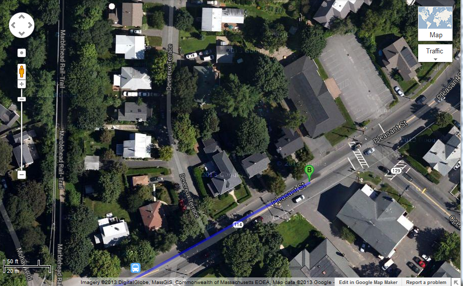 The BLS was founded at Carl Purinton's home in 1932. This is a satellite view of the home as it was in 2013. The house is located at 251 Pleasant Street, Marblehead MA. It is on the north side of the street, marked by the green "B".