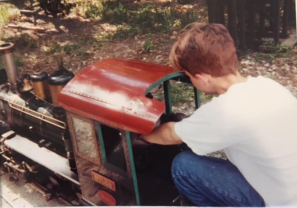 Jake Cooper posted on Facebook, 21 February 2020: When I was probably 13 at Mark Bing track in Katy Texas running Walts loco. Photo courtesy of Brian Banks.
