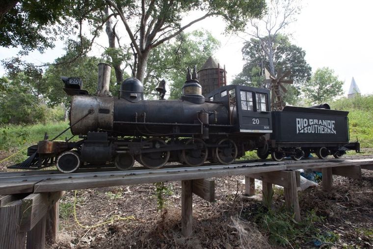 A steam-driven train runs through John Greiner’s property in Milam County. Greiner built about 1 1/2 mile of track around his land. Photo by Rusty Schramm, 11 October 2014. http://www.tdtnews.com/image_0b103f50-5191-11e4-a632-001a4bcf6878.html