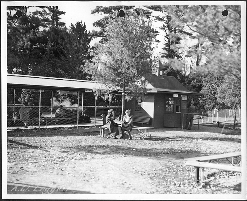 Joy Town Railroad. Jim Leggett's grandmother, Myrtle Leggett, on the right. Photo by A.W. Leggett. From http://www.chaski.org/homemachinist/viewtopic.php?f=8&t=97705