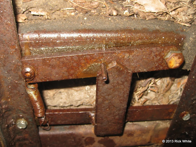 Pointer to the right and the lever with the pin on it has moved back. Note wear mark on the left under the lever that holds the pin. Photo by Rick White.