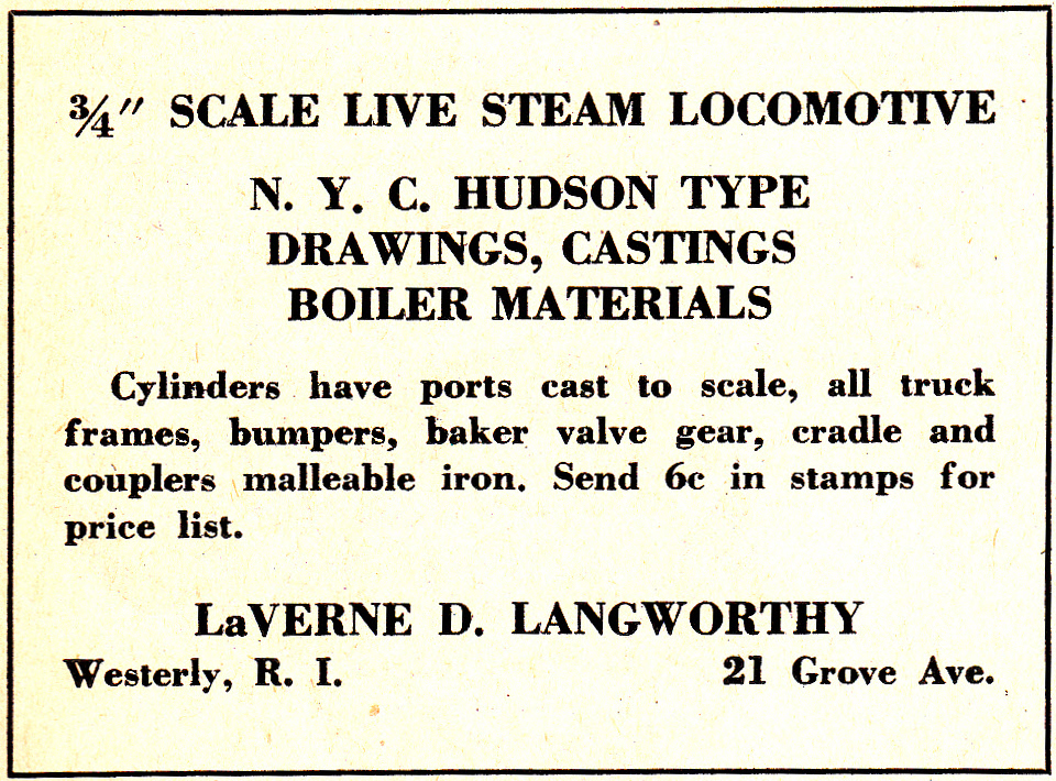LaVerne D. Langworthy advertisement from "Mechanical Models" magazine, January 1938.