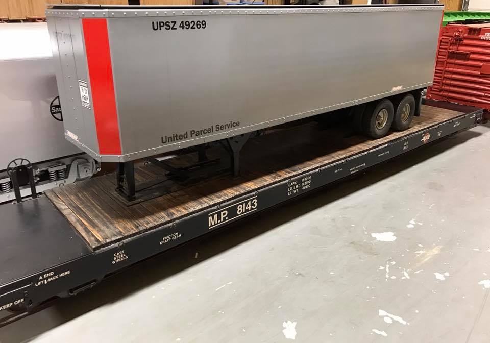 This trailer and flatcar were scratch-built by the late Lee Wright. Photo by Danny Click, April 2017.