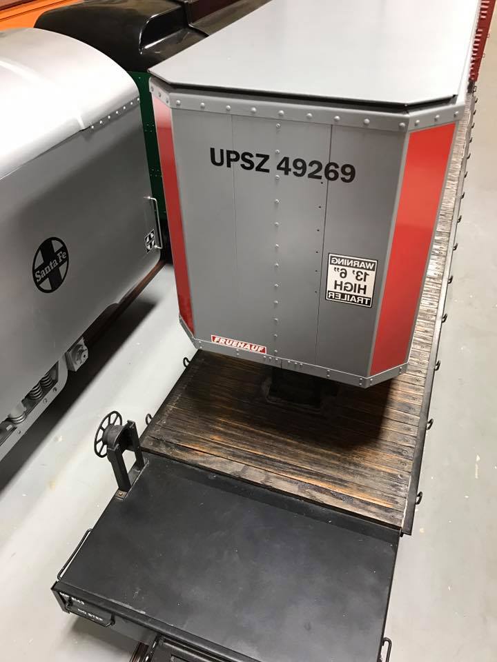 This trailer and flatcar were scratch-built by the late Lee Wright. Photo by Danny Click, April 2017.