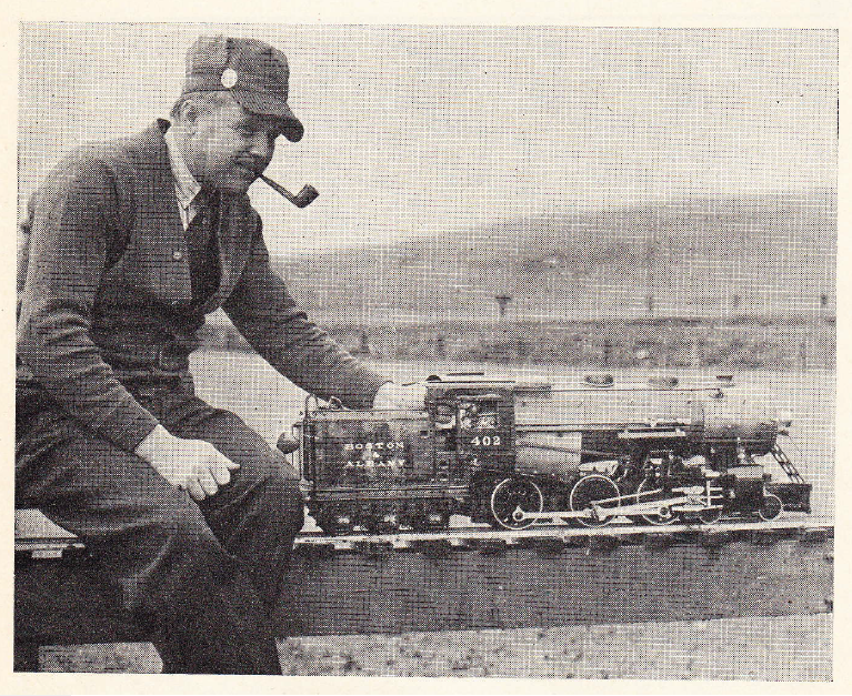 Lester Friend and his 3/4 inch live steamer locomotive "Livvie". From "The Model Craftsman", December 1943.