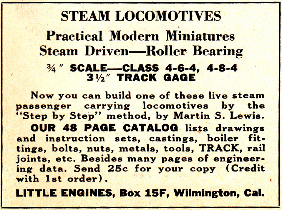 Little Engines advertisement from "Mechanical Models" magazine, January 1938.