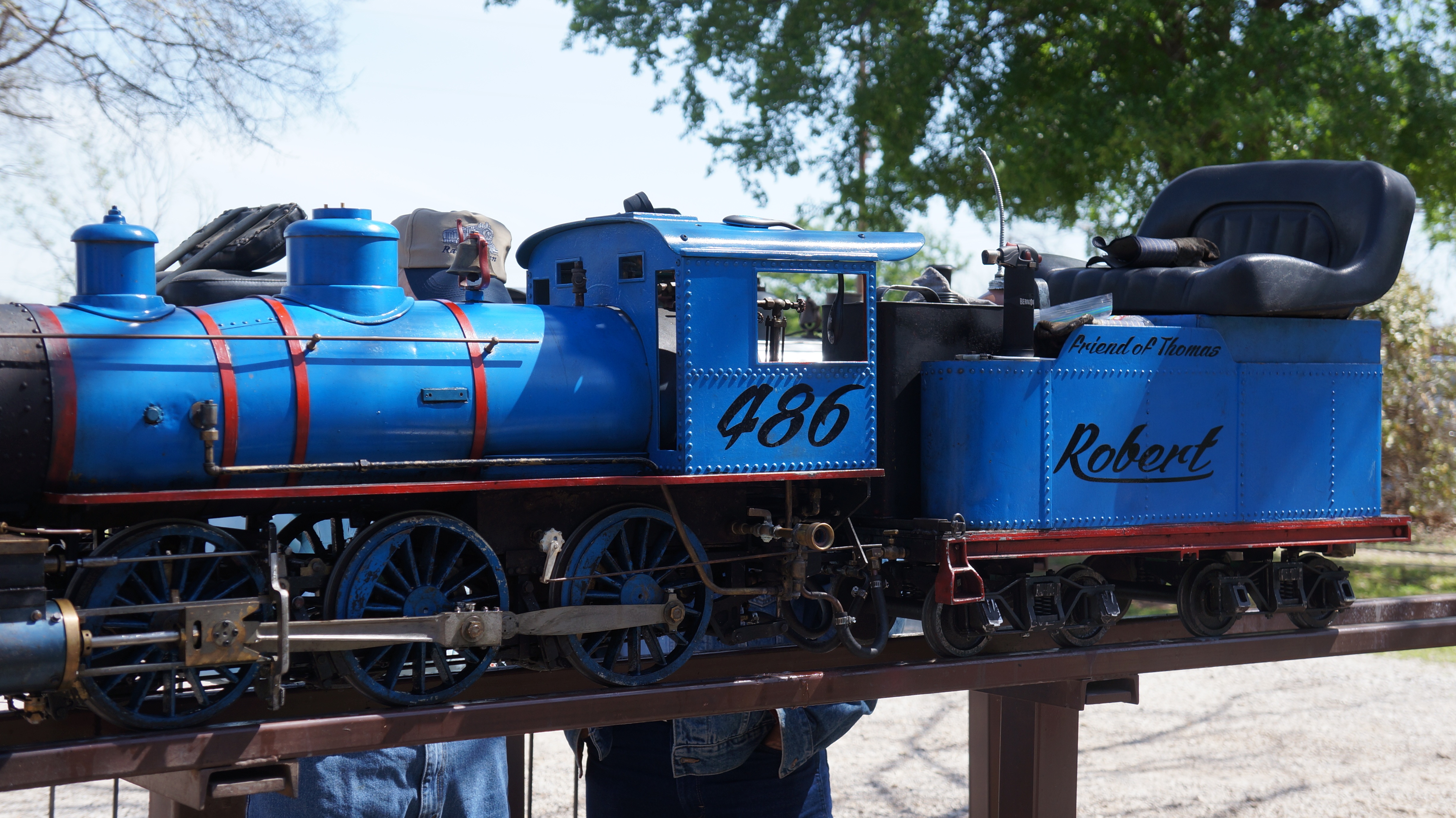 Allen Mogul "Robert" No 486 at the Annetta Valley & Western Railroad, April 2013. Note the old 1 gallon "gas can" oil tank mounted in the tender. Photo by Daris A Nevil.