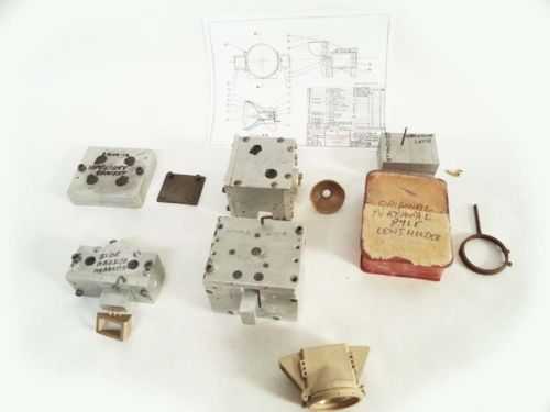 This is the original 1-1/2 inch scale National Pyle headlight molds from Railroad Supply Corporation of Burbank, California. Included are 6 molds consisting of Main body, side marker, reflector, lens holder, latch and the headlight bracket. These are the same molds that were used to make the National Pyle headlight shown in Catalog #9 on page E5 listed as part# 8007. Includes the original master pattern for the lens holder. Listed on eBay February 2016.