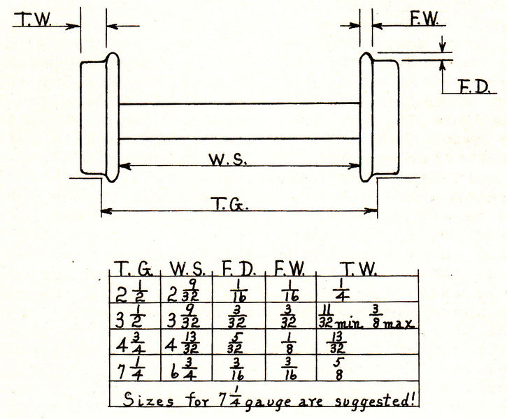 Wheel Standards of the Southern California Live Steamers, from "The Live Steamer", Nov-Dec 1950.