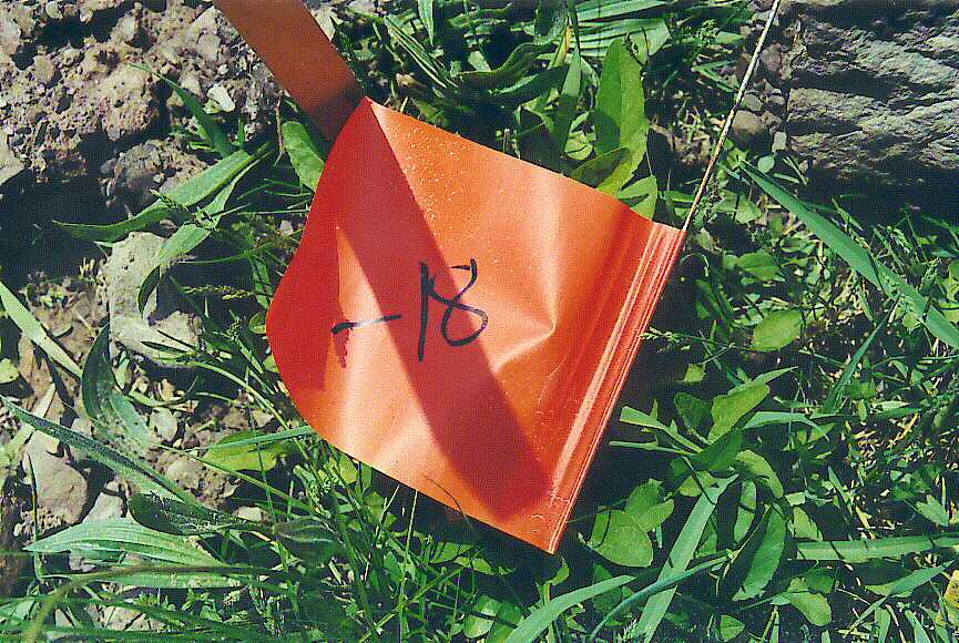 Survey flag marking the difference in height from the reference station. Photo by Bruce Mowbray.