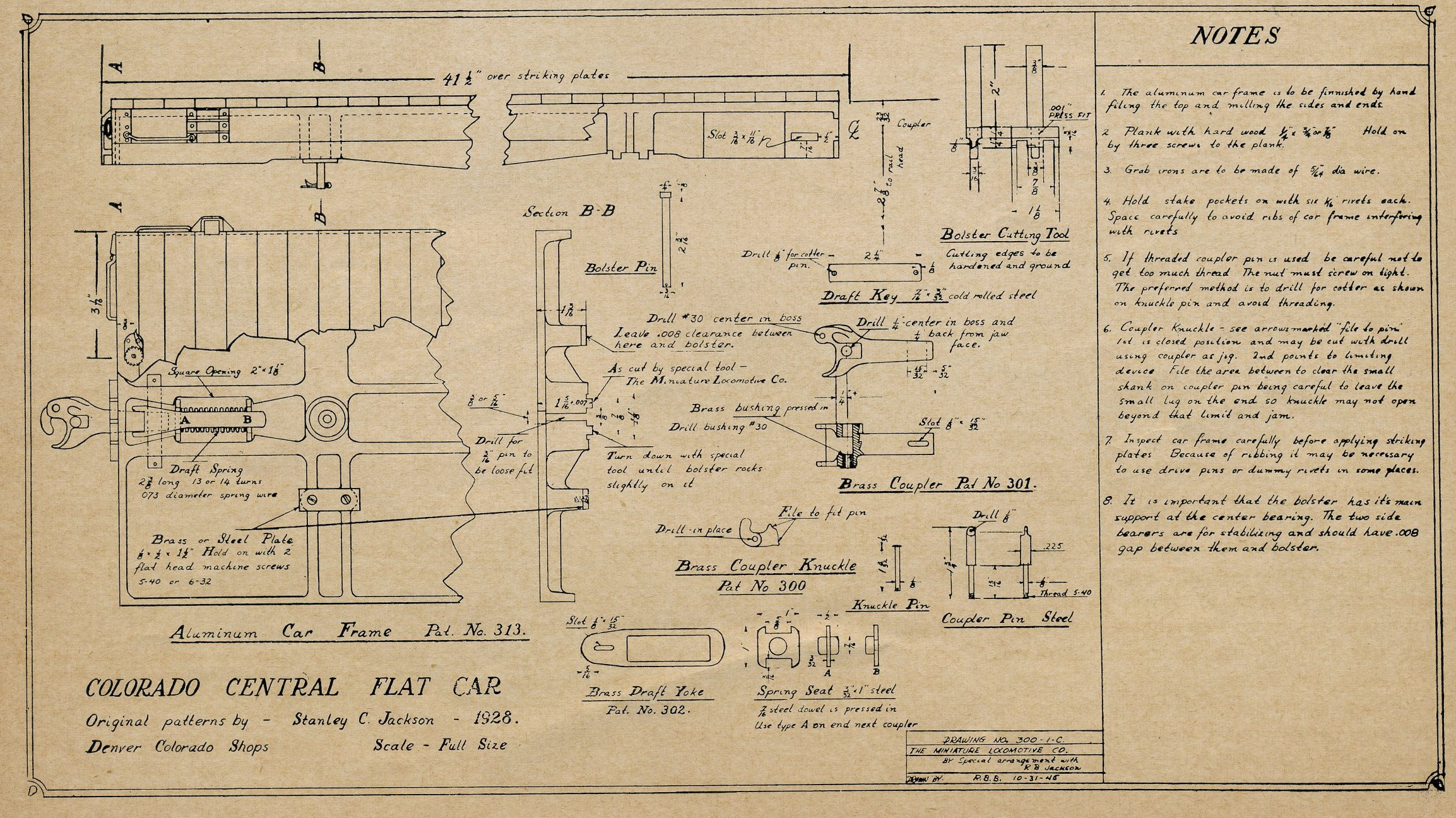 Colorado Central 1 inch scale flatcar drawings. From "The Miniature Locomotive", Sept-Oct 1953.
