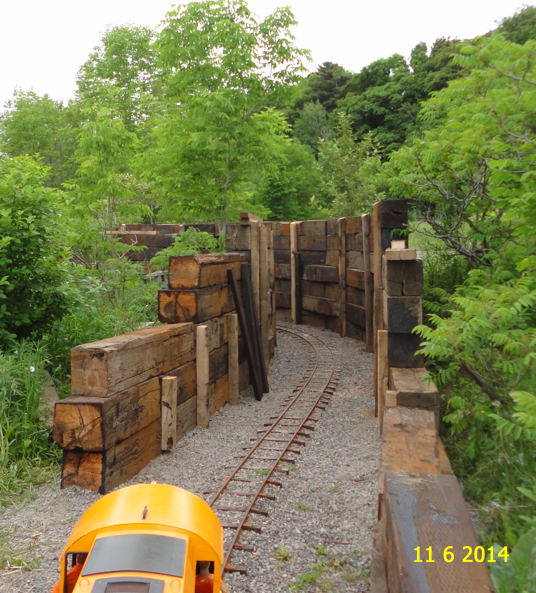 A tunnel constructed with 330 pound railroad ties. Photo by Ronald Pelletier, June 2014.