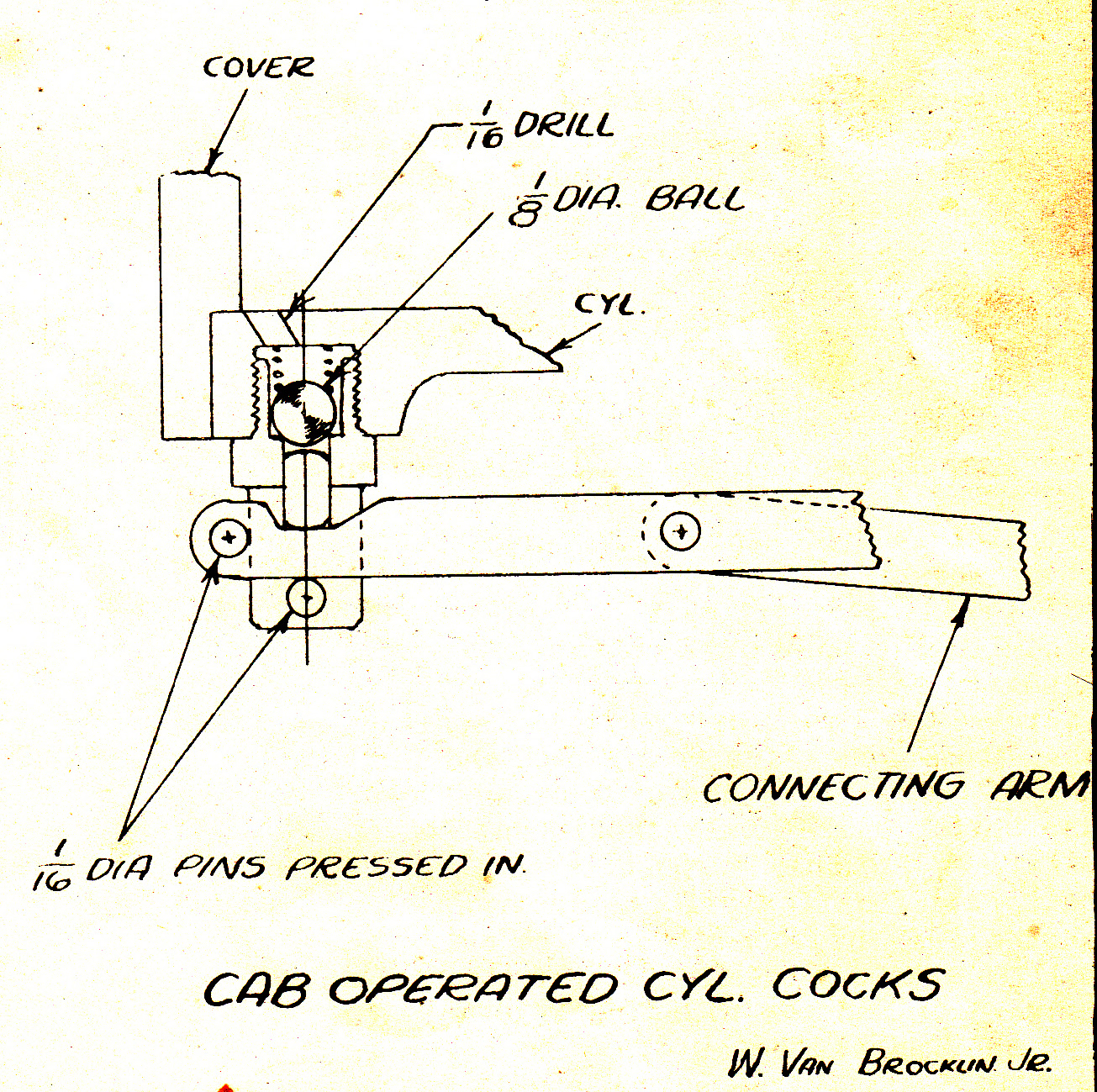 Figure 5: Assembly. Mechanical cylinder cocks, design by William Van Brocklin, The North American Live Steamer, Volume 1, Number 7, 1956.
