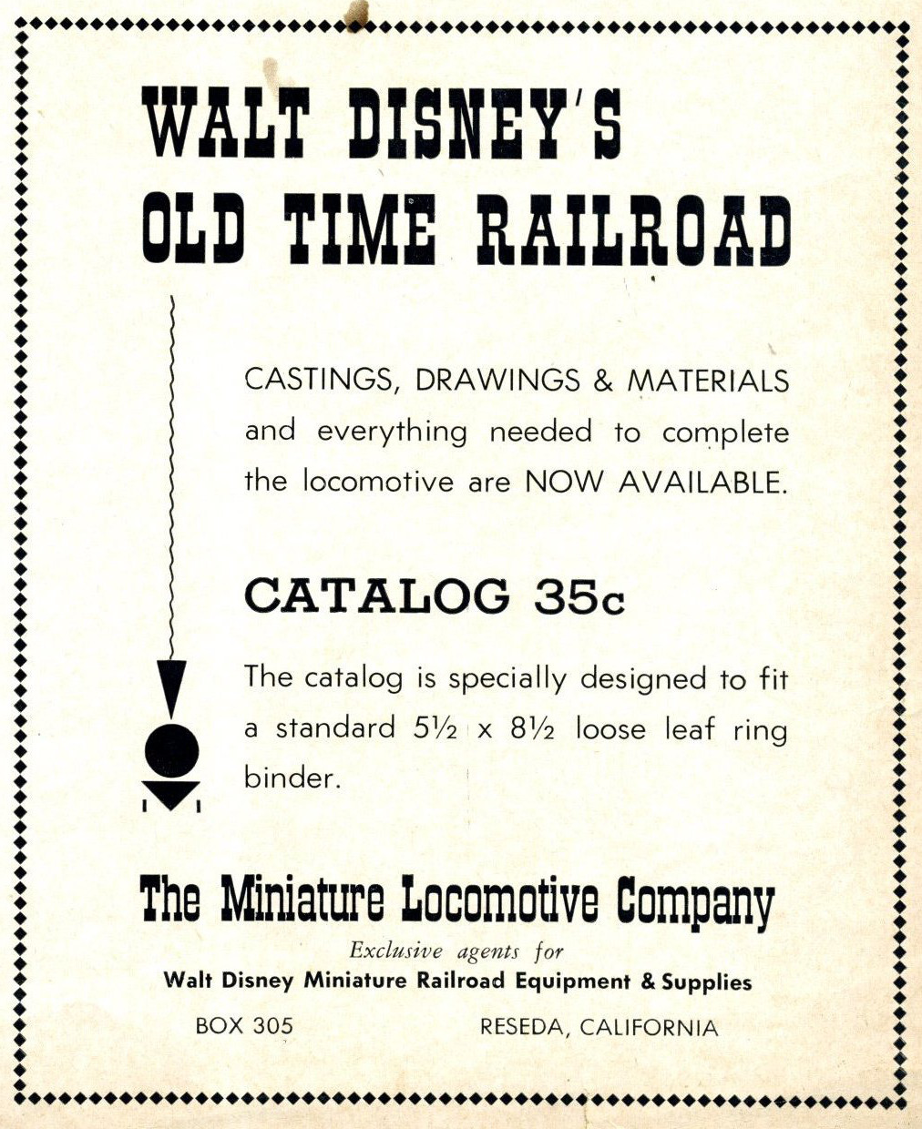 Walt Disney's Old Time Railroad advertisement, "The Miniature Locomotive", July-August, 1953