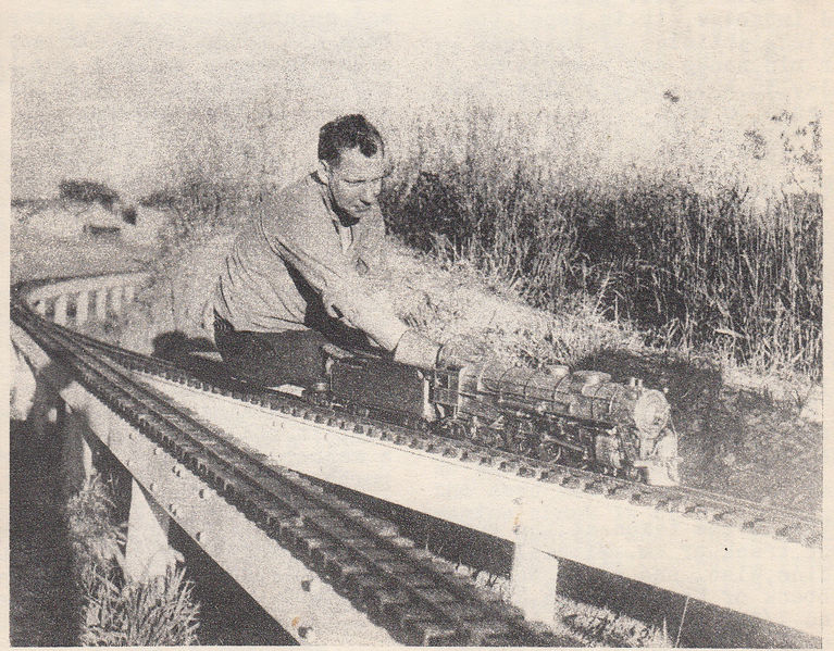 Photo taken at the track of William Michaels of Racine, Wisconsin and shows Walter Ribbeck of Kenosha with his fine 1/2 inch scale Hudson. From "The Live Steamer", Jan-Feb 1950.