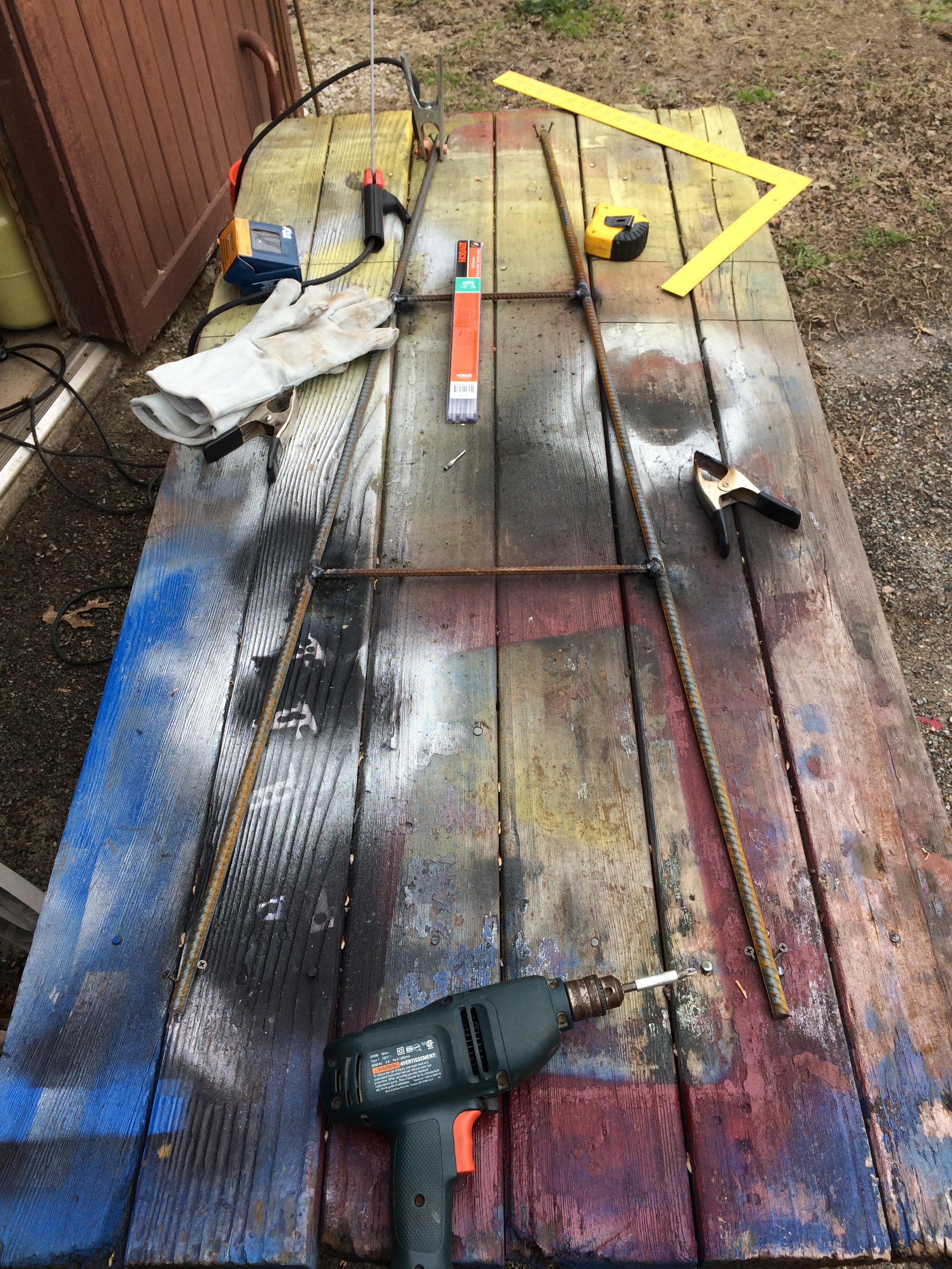 The A-Frame suppor struts for the water tower are laid out on flat surface for welding. Photo by Daris A Nevil, March 2015.