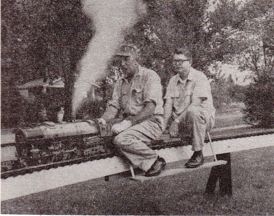 Lester Glass and son of Sac City, Iowa with Lester's Hudson on Dave Mackie's track at Ashland, Wisconsin. Photo by Dave Mackie. From "The North American Live Steamer", Volume 1 Number 9, 1956.