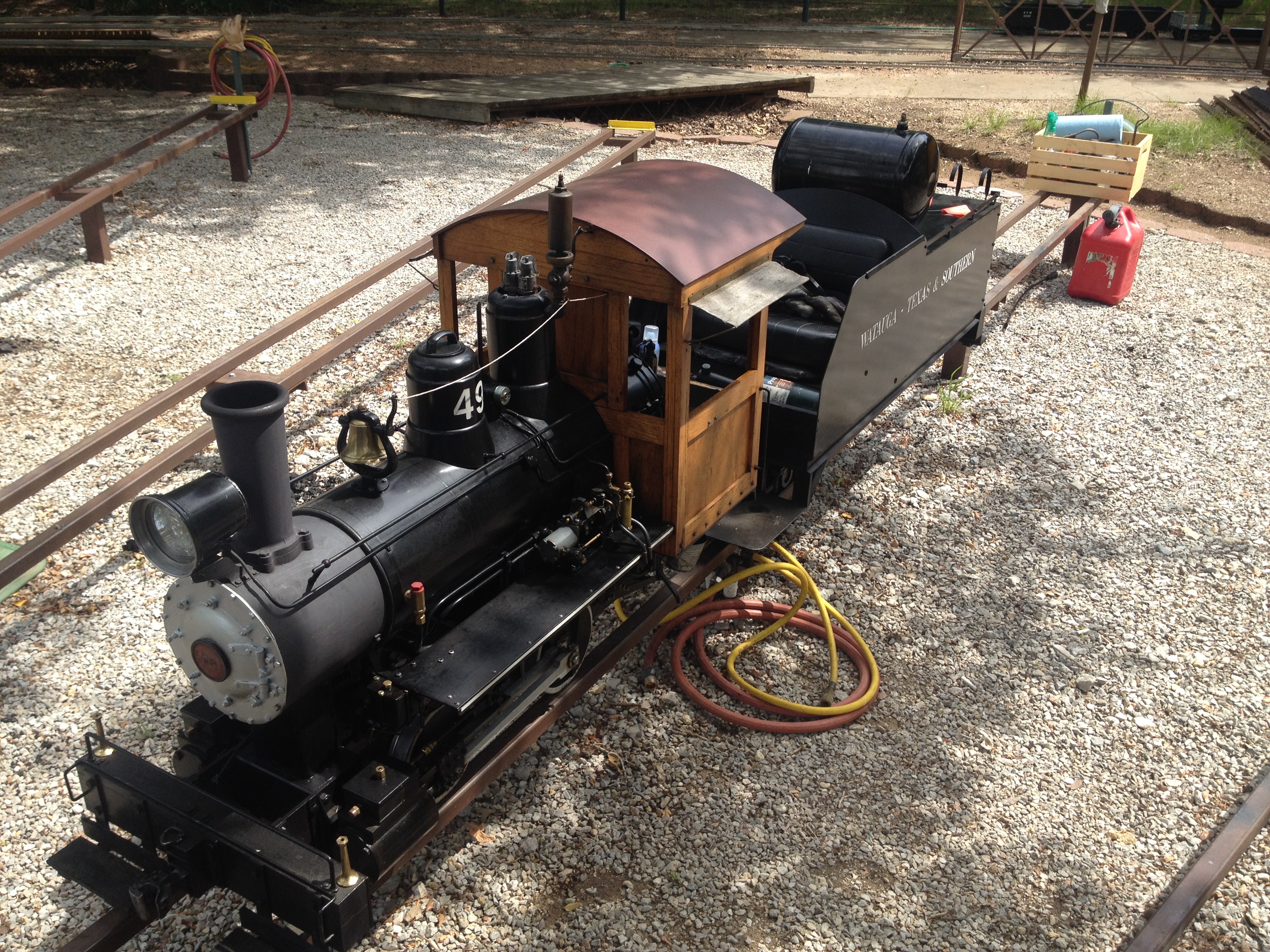 Wayne Davis' freelance 2-1/2 inch gauge locomotive. Taken at AV&WRR, 17 May 2014. Photo by Daris A. Nevil.