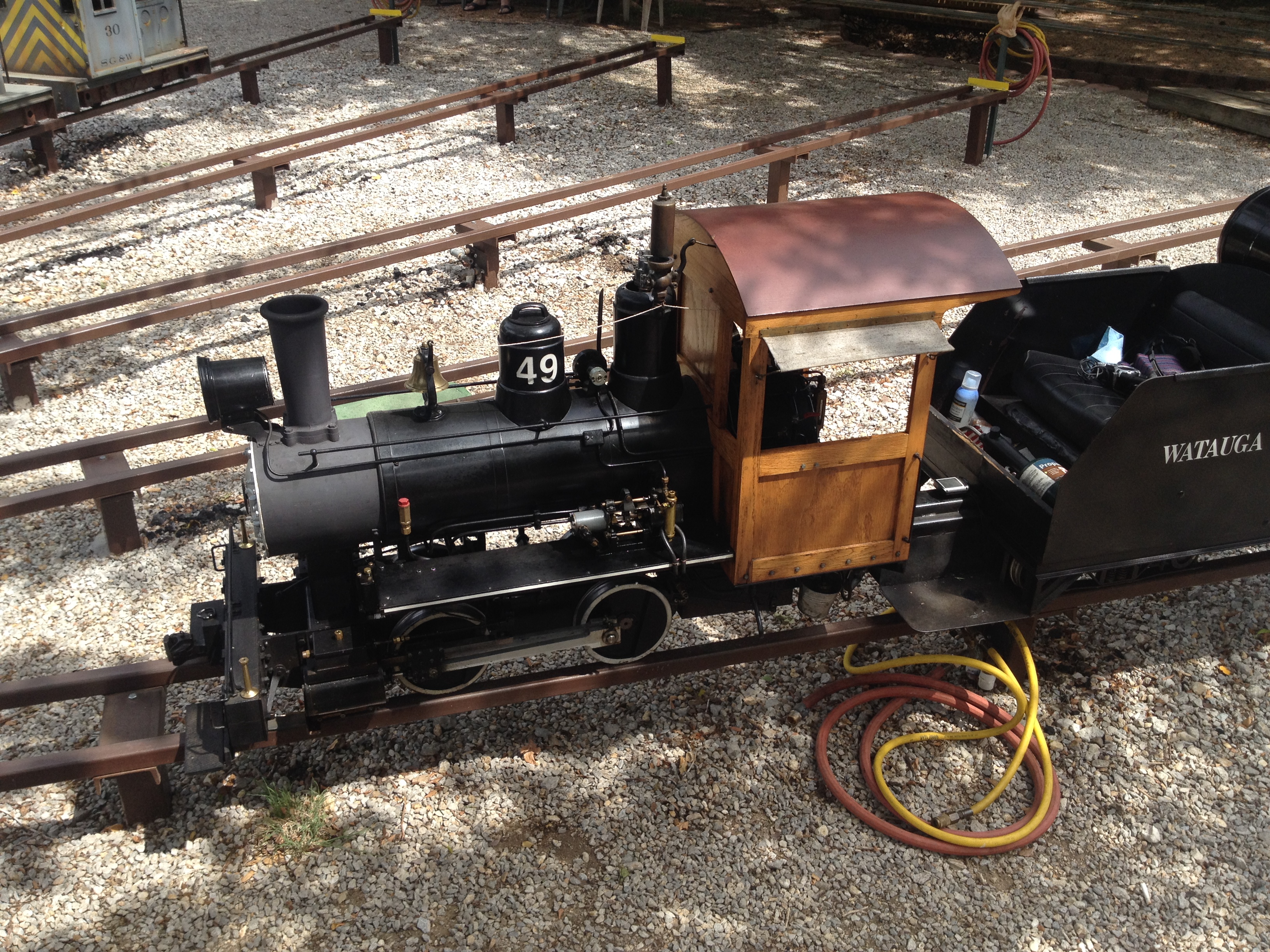 Wayne Davis' freelance 2-1/2 inch gauge locomotive. Taken at AV&WRR, 17 May 2014. Photo by Daris A. Nevil.