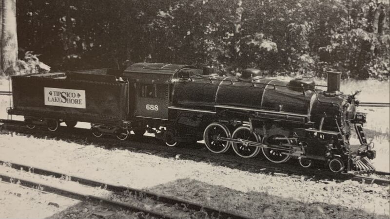 Dave Booth completed a total rebuild of this locomotive in 1988 for the Tipsico Lakeshore Railroad. It started life in 1925 as Willim L. Daney's first engine, a 4-6-0, which ran at the Colorado State Fair that year. Later it was rebuilt as a 4-6-2 and sold to David Rose in North Hollywood, California. Then it found its way to Flordia before moving to the Tipsico Lakeshore in Michigan. Dave Booth followed USRA Light Pacific plans in the rebuild and detailing. Photo by David G. Booth, from "Master Railroad Builder".