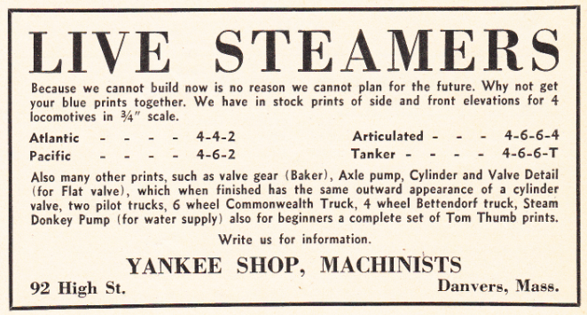 Yankee Shop Machinists advertisement from "The Model Craftsman", July 1944.