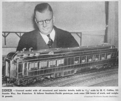 That dining car was one of the most beautiful models ever built in my opinion. The interior was fully detailed with Kitchen, eating areas, everything.. Even down to napkins on the tables. About the only thing missing was the food itself. I have personally seen this car. It is owned by a Collector in Palo Alto, CA.