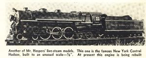 - February 1973 Live Steam came yesterday. Now you're getting somewhere! Those Hudsons were magnificent. I know them all. I babied them, (the streamlined versions also) because I was a locomotive inspector at the Rochester engine house of the NYC before I retired 12 years ago. I knew Paul Kiefer, also Mr. Buyse. Mr. Buyse was a visitor at my house before he moved away.