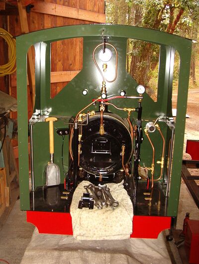 The run went very well, but did turn up two shortcomings: she wouldn’t notch up worth a darn and the coal fire tended to die at the fire-door end. We all had rides, I got to drive, and with swelling hearts the fire was cleaned, the boiler blown down and we returned to the shop.