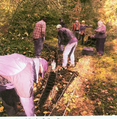 - During several weekend work-parties (depending on the weather), members of the Puget Sound Garden Railway Society (PSGRS) have rallied together at Tom's estate in Tacoma, WA and worked to remove over 6000-feet of 7 1/2-inch gauge track. The track will be inspected and new ties applied and then eventually re-layed at Mineral, WA. This is all a VERY labor-intensive project !