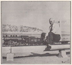 RMLS Founding Member & Vice-President, J.B. 'Byron' Squires, was a very prolific builder of 3-1/2" gauge live steam locomotives in Colorado. By 1956 Byron had constructed a 60 foot x 118 foot elevated-oval track, of about 304 feet in length, in the backyard of his new suburban residence in Colorado Springs. He named the little railway "Colorado Short Line RR". This modest CSLR then, was the only 3-1/2" gauge "closed-circuit track loop" known to exist in the entire Colorado Front Range Region. It was a simple oval, without having any separate steaming-bay facilities except for using the track itself, or using either an adjacent bench or some 2 x 8 planks laid on the ground-- but no one ever complained about the spartan facilities.