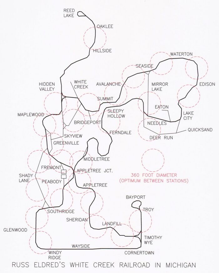 Years later I studied Russ Eldred's track and found many stations also spaced apart 360 feet apart or slightly longer.