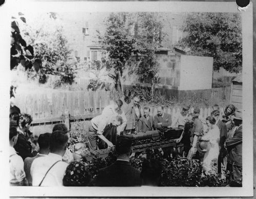 This track was the third of five layouts at four different locations for the T.S. & P.H. RR beginning with an indoor track for A.W. Leggett's electric box cab, down the hallway of a second floor flat in Montreal in the mid-1920's. Who knows what the downstairs neighbours thought about that? There was one switch to go into the kitchen on a spur. See A 3/4 Inch Scale Electric Locomotive.